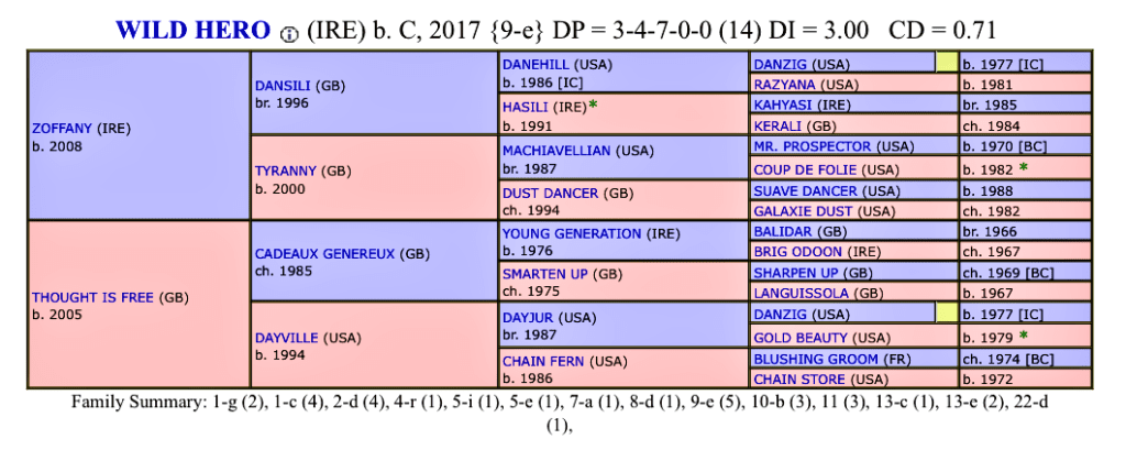 This is a free website, which I’d highly recommend. You can view the 5 generation pedigrees for any racehorse in training, including Dosage Index profiles for each horse.